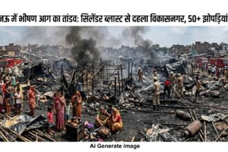 लखनऊ में भीषण आग का तांडव: सिलेंडर ब्लास्ट से दहला विकासनगर, 50+ झोपड़ियां राख