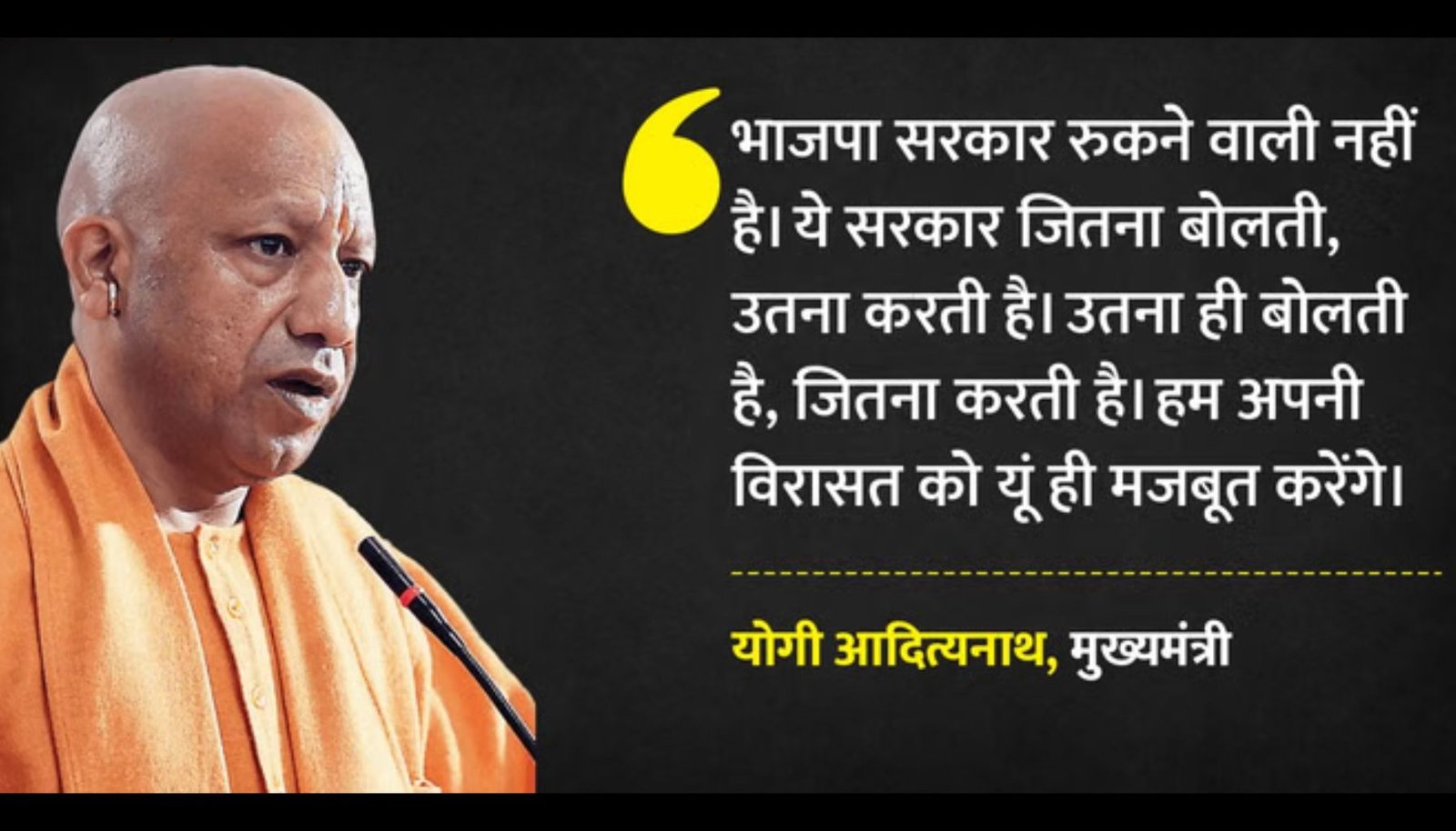 मुख्यमंत्री योगी ने कहा कि भाजपा सरकार वह करती है जो कहती है और उतना ही कहती है जितना करने का दम रखती है। उन्होंने कहा कि “यह सरकार रुकने वाली नहीं है। हमारी सरकार ने जो वादा किया, उसे जमीन पर उतार कर दिखाया है।”