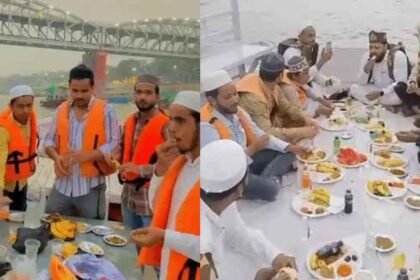 काशी में गंगा के बीच नाव पर इफ्तार से बवाल: बिरयानी परोसी गई, VIDEO वायरल होते ही 14 गिरफ्तार